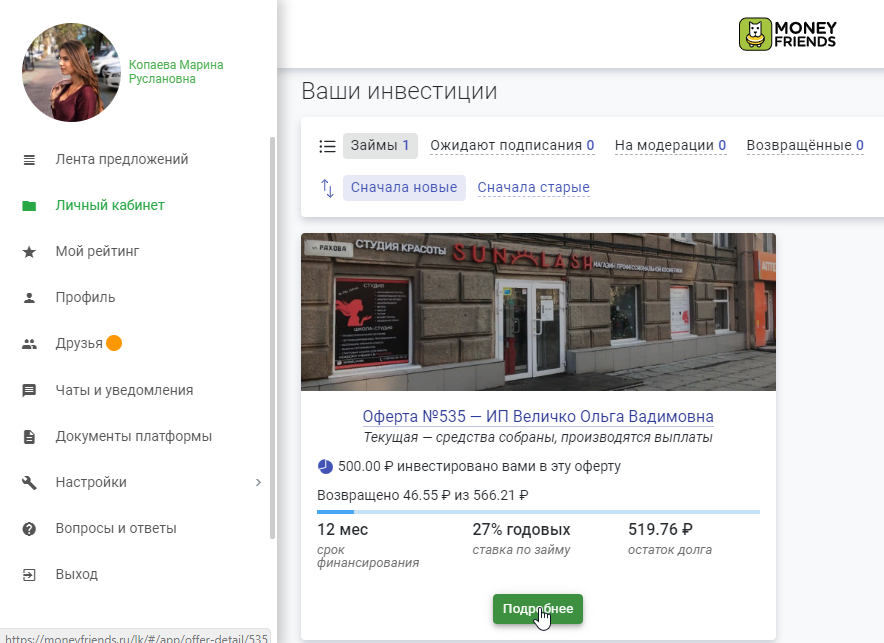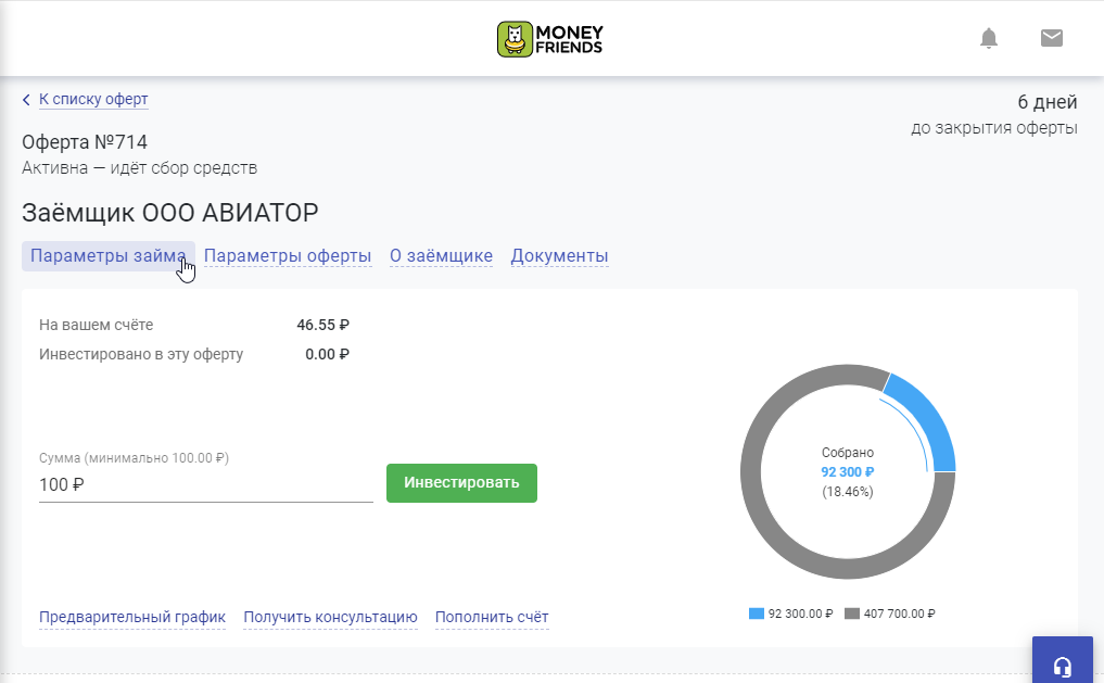 После нажатия кнопки «Инвестировать» на карточке оферты, инвесторы увидят обновлённое подробное описание.